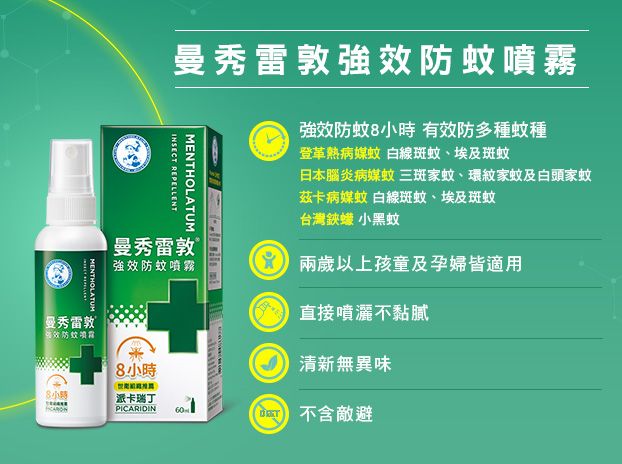 採用世界衛生組織推薦的新一代防蚊成分 「派卡瑞丁 Picaridin」