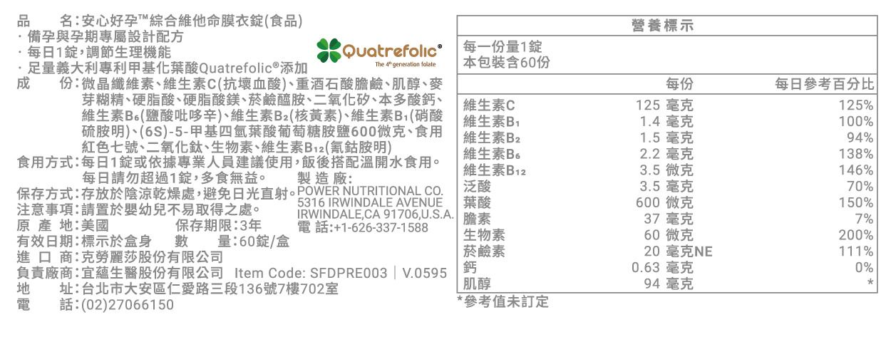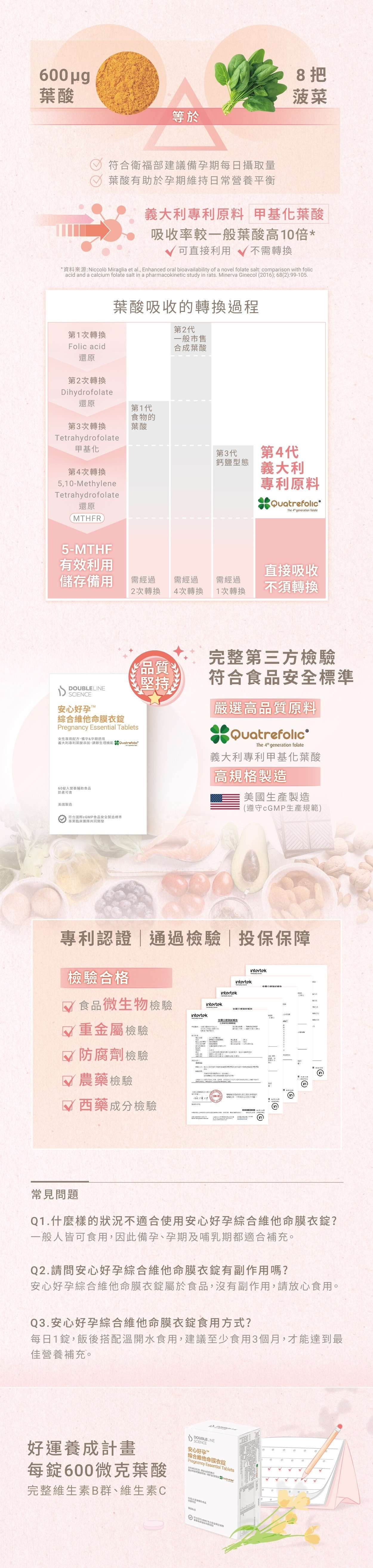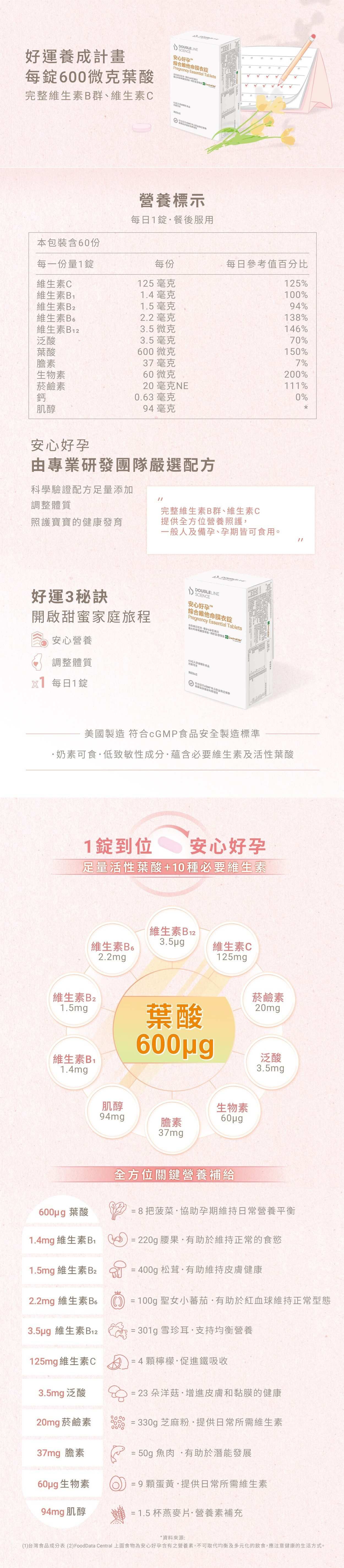 3.每錠含足量600微克活性葉酸+10種關鍵營養素,提供全方位營養照護
