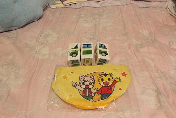 這樣拼是一胎車車。(下面的袋子是裝沙沙拼圖積木,很可愛吧!)
