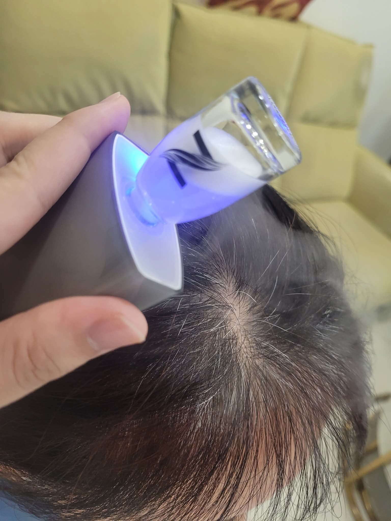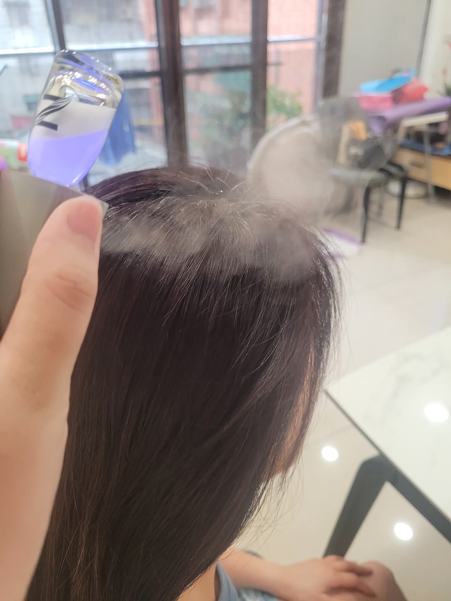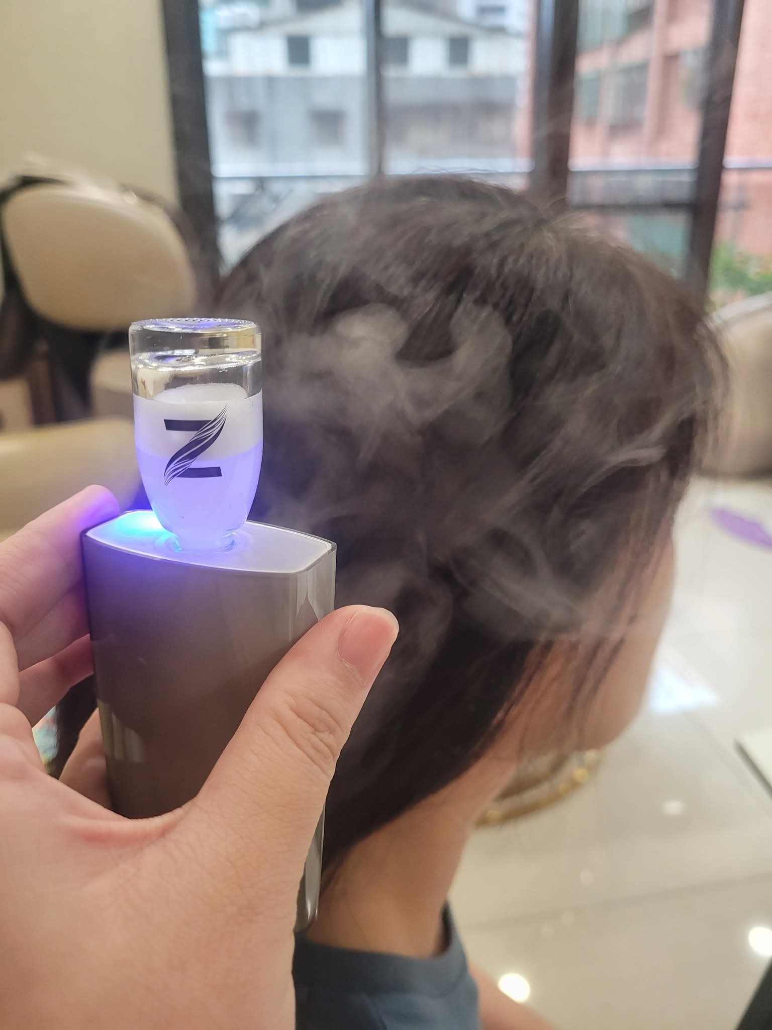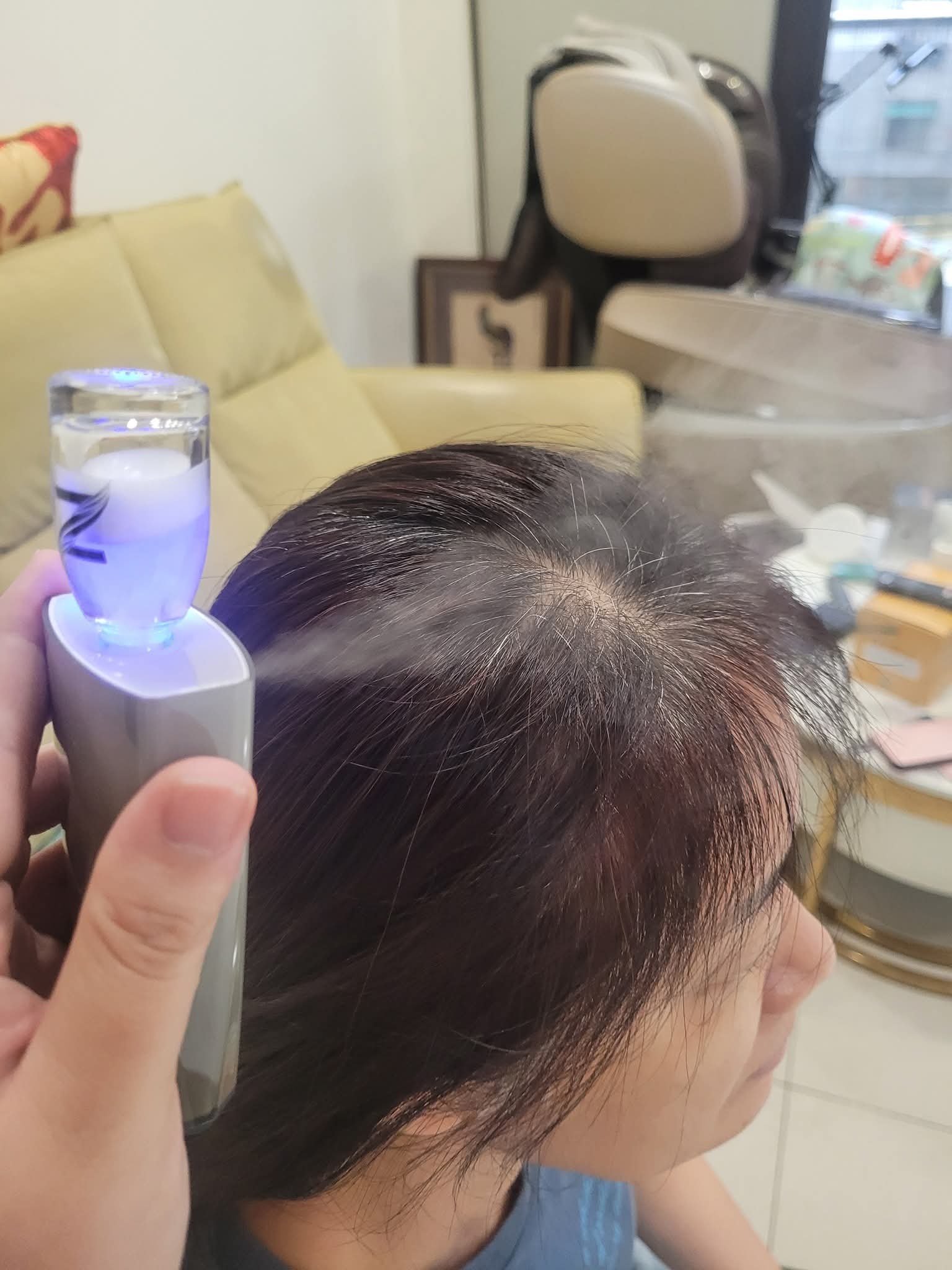 產品使用上會發出藍光,可以很明顯的看到噴霧出來,噴完後滿滿的玫瑰香,原先乾澀的毛髮有感覺吸滿飽飽的營養,頭皮也有吸收到,不會有油膩的感覺非常乾爽,實際使用一週完整一瓶用完後掉髮減少了,髮根也比較強韌不會一摸就掉幾根。只要簡單的用噴霧就可以保養頭髮非常方便,噴霧儀也很輕巧,出遠門時可以方便攜帶。