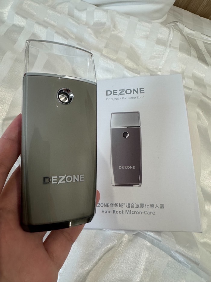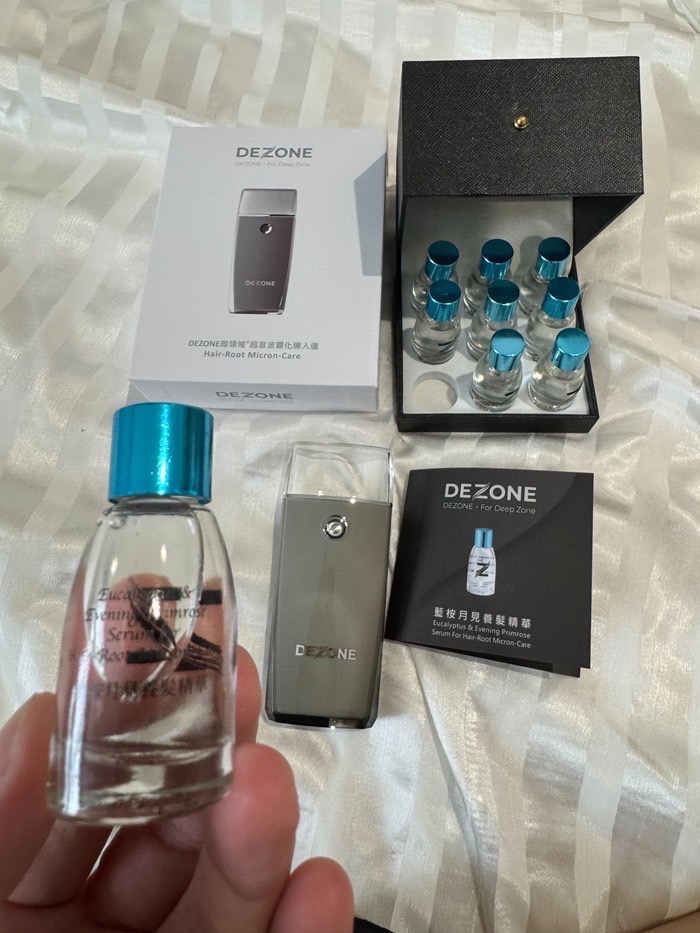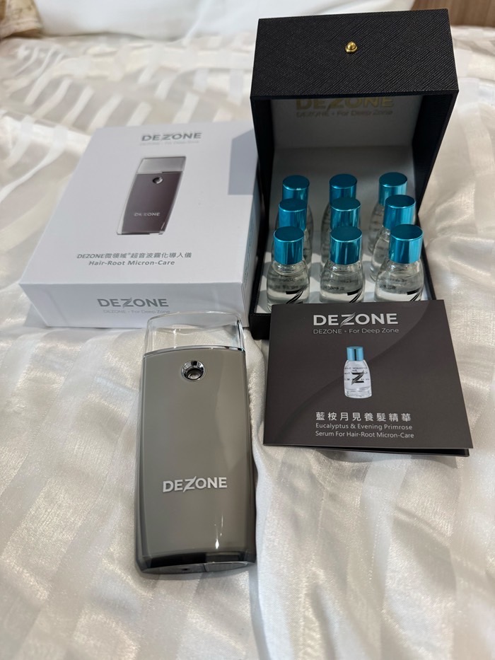產後掉髮跟面臨育兒方面的各種壓力+季節交替經常帶來頭皮困擾,常常三不五時的需要跑趟美容院做頭皮護理療程。但有了二寶後,時間更為寶貴,沒辦法像之前一樣頻繁保養,像最近雖然用了市面上國內外頭皮專用洗髮精、養髮液仍有掉髮情況。總是發現地上又一堆落髮,洗頭也是掉好多頭髮,非常擔心會變禿頭媽咪。這次來試試很酷的★ 【DEZONE髮根微療】養髮精華安瓶(藍桉月見)+DEZONE導入儀。【DEZONE髮根微療】是居家保養的一種,使用方式很簡單,頭髮洗淨後,頭皮吹至半乾,沿著髮際線導入,按摩頭皮後再把頭髮吹乾。我也很喜歡導入儀的藍光,給人一種寧靜、舒適、優雅的感覺。