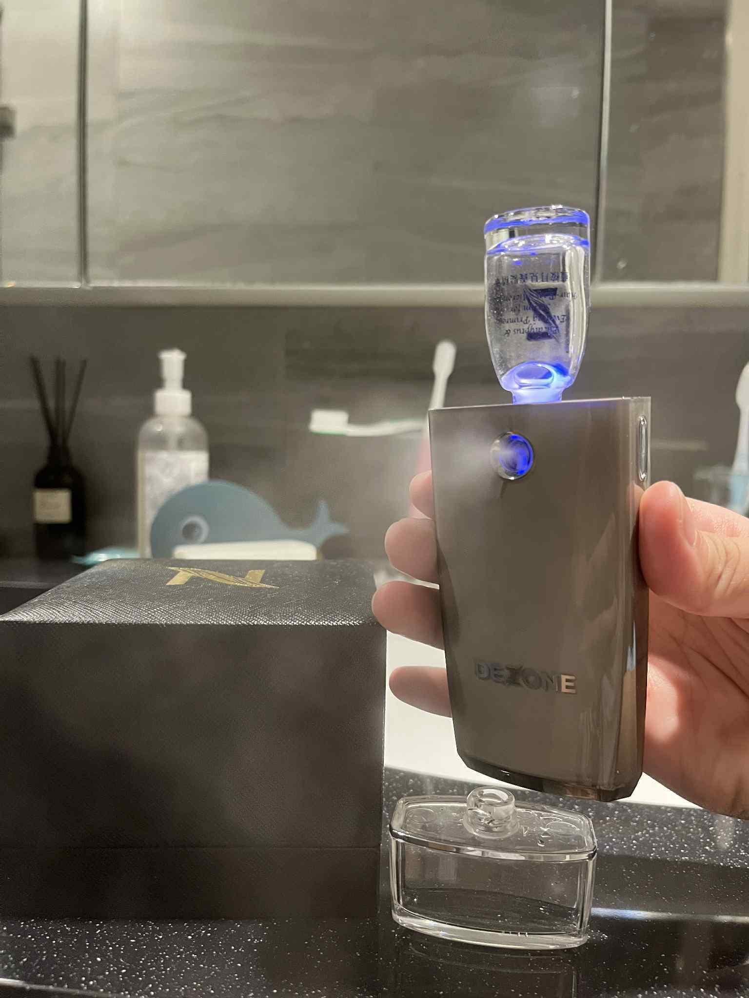 收到產品時,第一印象非常好,安瓶包裝看起來非常專業也很高級,且瓶數很多, CP值很高可以用很久,養髮精華則有淡淡的香味,不刺鼻,聞起來很舒緩放鬆;另外導入儀則是只有一個按鍵,握感剛好,使用上簡單直白,把安瓶旋轉上去,長按是開/關機,按一下則是啟動噴霧模式,用完清洗則是把安瓶換成裝有過濾水的透明盒蓋,一樣按一下按鍵啟動噴霧模式清洗噴口,簡單易上手的設計。