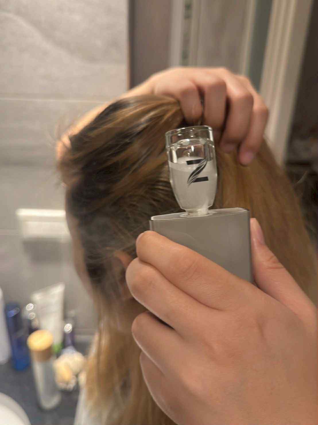 在使用了兩周左右的時間,雖然說頭髮可以先撥開露出頭皮後再按開啟噴精華液然後再關掉導入儀重複撥髮噴灑的動作,但長期使用下來會為了方便省時,在撥髮的同時並沒有把導入儀關掉,於是操作到後腦勺時,其實會覺得很浪費精華液,因為看不到所以很難一隻手握著導入儀,另一隻手又要精準地把噴口對準頭皮,不過也可能是我自己多心了,因為廠商主打噴出來的分子很小,是微米級霧滴,可以深入每一個髮根毛孔,達到深層吸收,變成像我這樣對於保養比較隨興隨便的人,在使用完噴霧後,再加上用手指按摩頭皮後,也是可以很盡興且安心地完成療程,實際體驗的感受是好的,覺得頭皮變得較清爽,不那麼容易覺得頭癢癢的,且不再快速出油。這組產品對我來說不只是護髮,更是一種居家儀式感的養護享受。