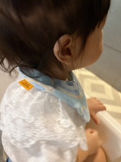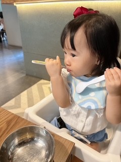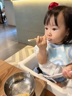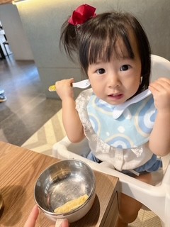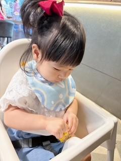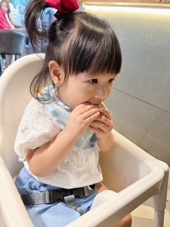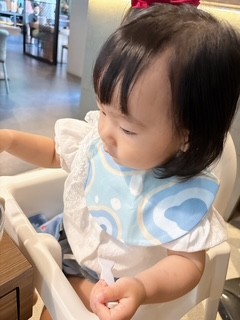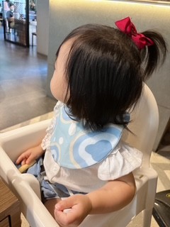 不然粉圓👶🏻秒拔掉根本戴不住 吃飽就準備換一套衣服!!