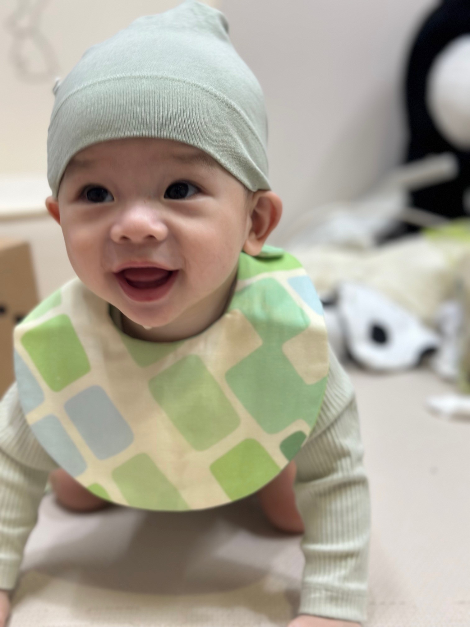 手帕也是很好用!喝奶可以墊在脖子上,或是擦口水可以使用😍