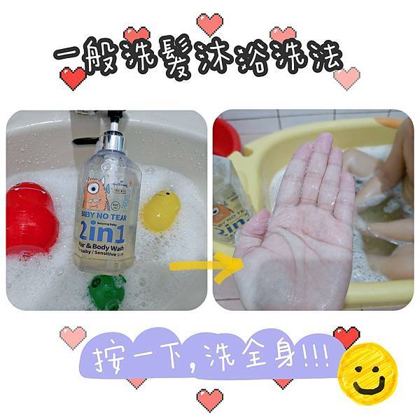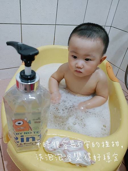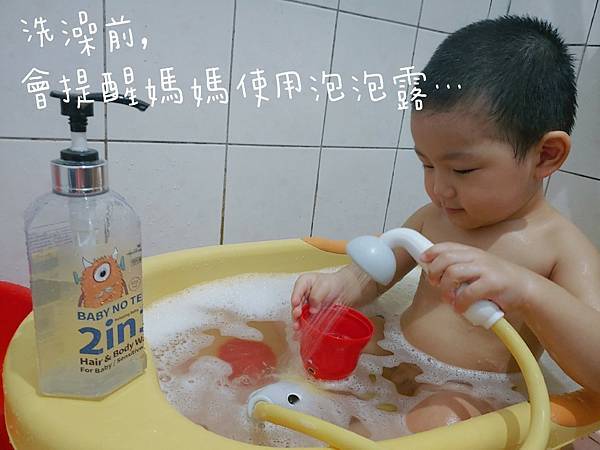 但我想該面對的還是應該要面對,於是抱著緊張、害怕的心情幫雙寶洗澡,同時試著觀察著雙寶洗澡容易緊張、掙扎的瞬間,後來發現「洗頭」總讓雙寶變得不安,而有掙扎的行為,雙寶掙扎頭上的泡泡和水就容易流動臉上,甚至眼睛裡面,雙寶就開始有哭鬧的反應,媽媽我就更手忙腳亂...