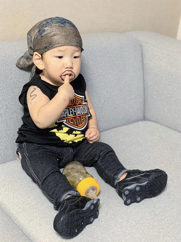妳以為只有媽媽崩潰照嗎?那妳就錯了,李美度也會幫孩子扮成我們常在電影裡看到,在酒吧喝啤酒的重機大叔樣子,除了性格的落腮鬍外,還得搭配個人風格鮮明的刺青,只不過人家是左青龍、右白虎、老牛在腰間、龍頭在胸口,我們是小蛇乙隻!這組超級萌照,媽咪們請小心服用!