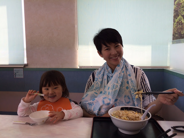 拉麵吃到一半,一邊餵老大吃拉麵,一邊給老二吸奶頭,