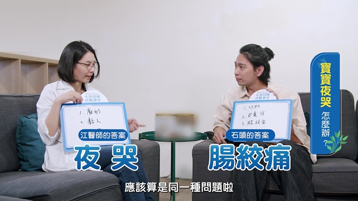石頭說,自己照顧三寶的經驗中,最怕遇到腸絞痛、吐奶狀況;江醫師則表示,照顧寶寶時,孩子夜哭、厭奶則最讓她苦惱。而上述常出現的狀況,往往與「寶寶腸胃不適」有關。