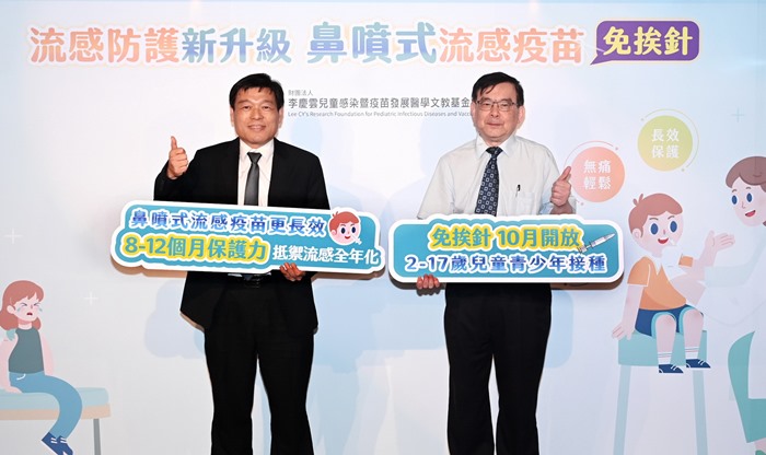 (今年10月引進鼻噴式流感疫苗供2~17歲兒童青少年自費接種,是首款不需針劑注射的流感疫苗,具8~12個月保護力抵禦流感全年化。圖片提供/李慶雲兒童感染暨疫苗發展醫學文教基金會)