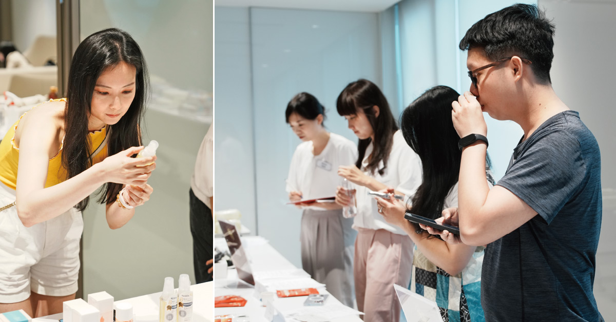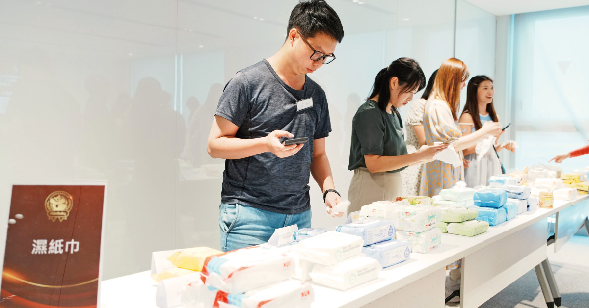 評鑑會一開始,就看到爸爸媽媽非常用心的研究各式產品,對於濕紙巾,測試是否方便單手抽取且不連抽、仔細觸摸濕紙巾的材質;至於妊娠油,一瓶一瓶的聞味道、抹在肌膚上感受滋潤度,吸收度,是每位爸媽的標準動作;滴雞精則一一品嘗,並仔細閱讀包含雞隻來源、成分等產品資訊;攸關寶寶足部健康的童鞋,也是逐一測試輕巧度、柔軟度、包覆性……