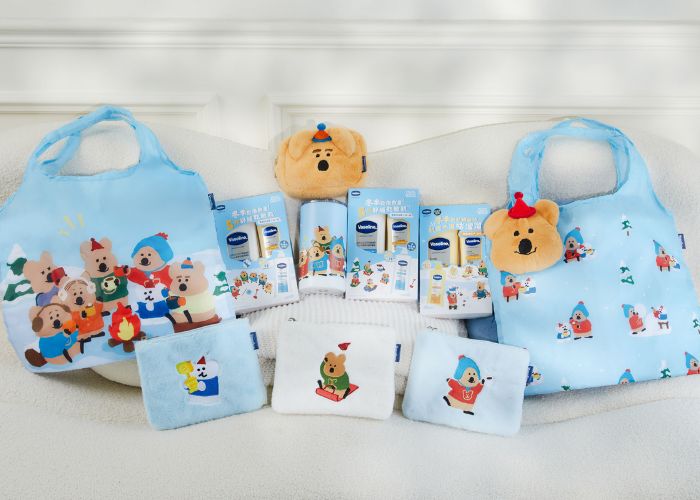 這次同為『陪伴守護系』的凡士林與「DINOTAENG」共同攜手,凡士林兩款經典潤膚產品、與「DINOTAENG」的角色,完美搭配:#舒敏大白瓶—專業修護潤膚露 搭配BOBO、#修護大黃瓶—深層修護潤膚露搭配QUOKKA,創造出超級軟萌可愛的冬日限定療癒組包,就如同『肌膚乖乖寶盒』一般,將一起撫平冬季肌膚與心情的emo。