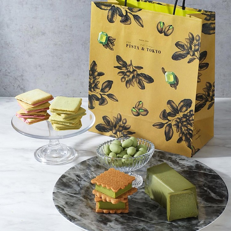 PISTA & TOKYO(ピスタ&トーキョー)是一家專門演繹「開心果」魅力的甜點品牌,從品牌名到包裝設計都貫徹著高雅綠金色調,象徵開心果的濃郁香氣與成熟質感。最受歡迎的商品是「Pistachio Sand 開心果夾心餅乾」,採五層結構設計:酥香餅乾夾入厚實的開心果巧克力內餡,堆疊出鹹甜交錯的立體口感。除了經典的「開心果×開心果」款式,也推出「開心果×覆盆莓」等限定版本,以酸香果味平衡濃郁堅果香。