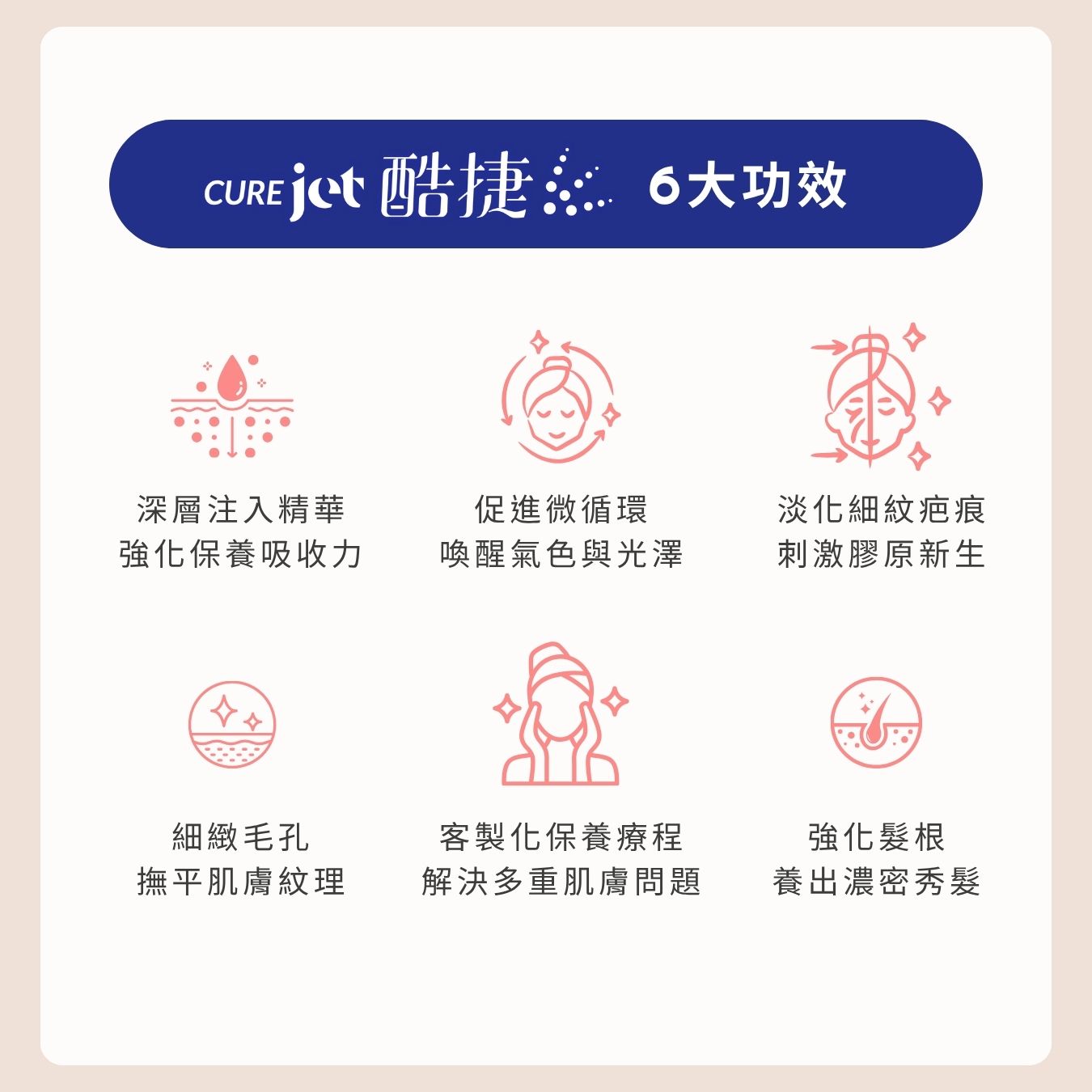 另外,產後落髮也幾乎是所有媽媽都會面臨的煩惱。荷爾蒙變化讓頭髮大量脫落,頭皮變得敏感、油脂分泌失衡,整體髮量真的看起來稀疏極了。CUREJET酷捷不只是臉部或身體的保養科技,它同樣能應用在頭皮養護上。