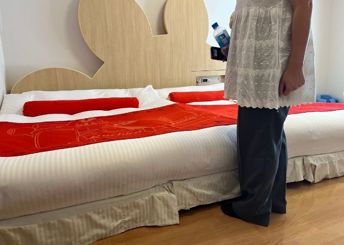 酒店特別考量到小朋友的安全,特以低床床架為設計,降低床架與地面的高度,讓全家都能安心休息。
