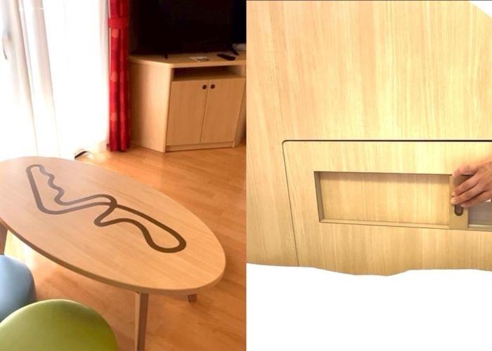 西棟分別設有鈴鹿賽車場的吉祥物酷奇拉家族房,和賽車場兒童房非常適合家有嬰幼兒的家庭入住,房內除了備有必備的嬰幼兒洗沐用品外,酒店方考量到嬰幼兒的安全,整體房內設計充滿親子友善的元素,讓家庭可以安心入住。