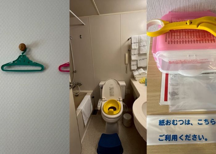 房內皆配有奶瓶消毒機、尿布袋、嬰兒沐浴露、兒童衣架、兒童馬桶座等等,毛巾更是準備了2倍的毛巾量,父母也不怕替寶寶清潔完後沒有毛巾可擦,使用完的尿布隨時丟於尿布袋,不怕房間瀰漫味道,好好享受難得的假期。