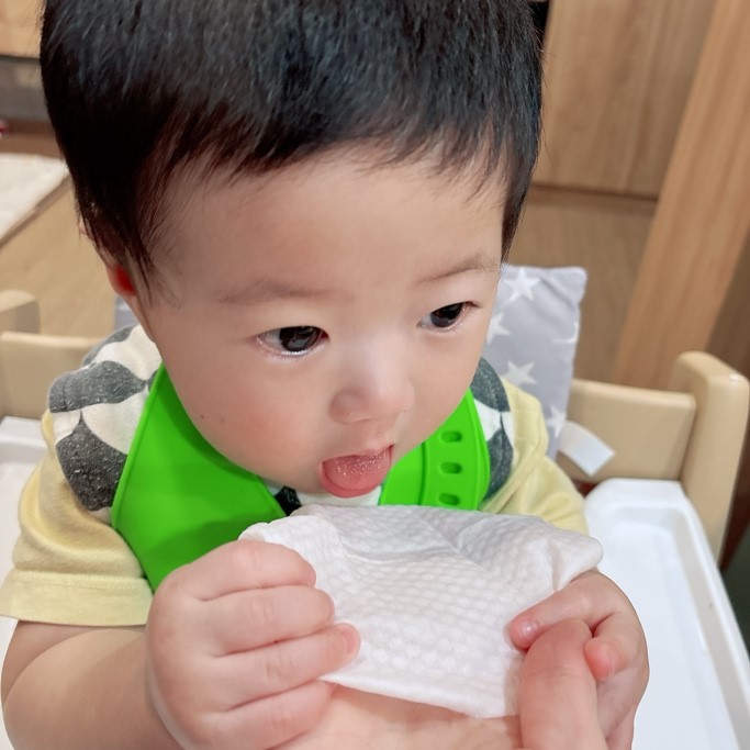 我還沒當媽時,看到濕紙巾便宜就買,現在當媽了之後更在意純水成分。首先是包裝可愛,寶寶去翻我包包時也會拿起來玩一下,寶寶使用上也不會過敏、不舒服,而且它用量也省!過往小孩吃米餅一次就要用掉好幾張,這個只要一張就可以把手、嘴巴都擦乾淨,大推!
