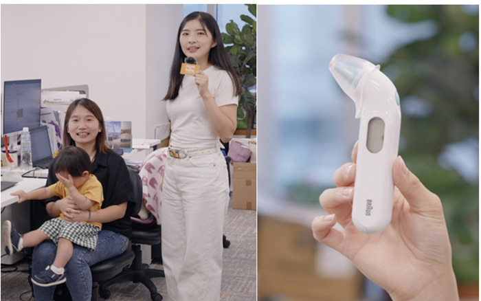 D小姐笑著說:「我們家現在用的耳溫槍,可以選擇孩子的年齡,會直接幫你判斷有沒有發燒~爸媽用起來也比較安心!」