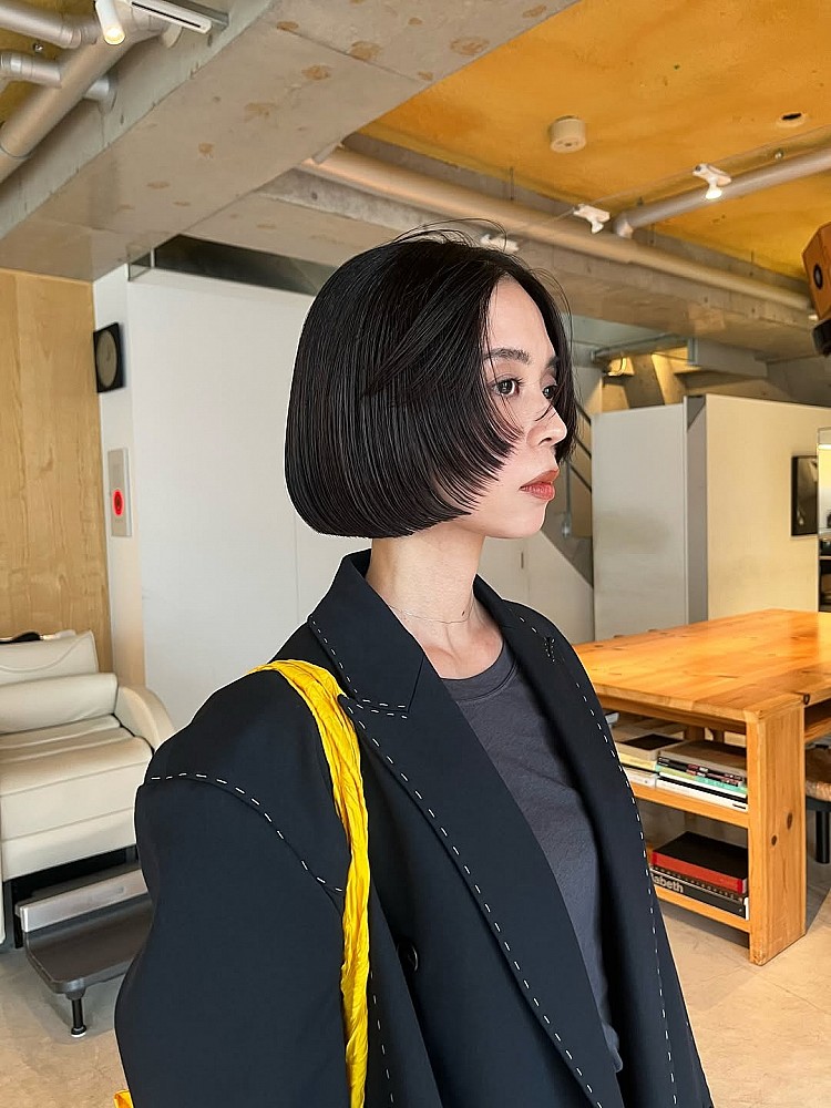 想要更俐落的短髮風格,可以嘗試「齊長鮑伯」。整體線條講求乾淨利落,不做過多層次,並且強調髮質光澤,讓黑髮看起來更加高級。這款髮型特別適合五官精緻、喜歡都會風尚的女性,只需要維持髮絲的直順感,就能創造高回頭率。