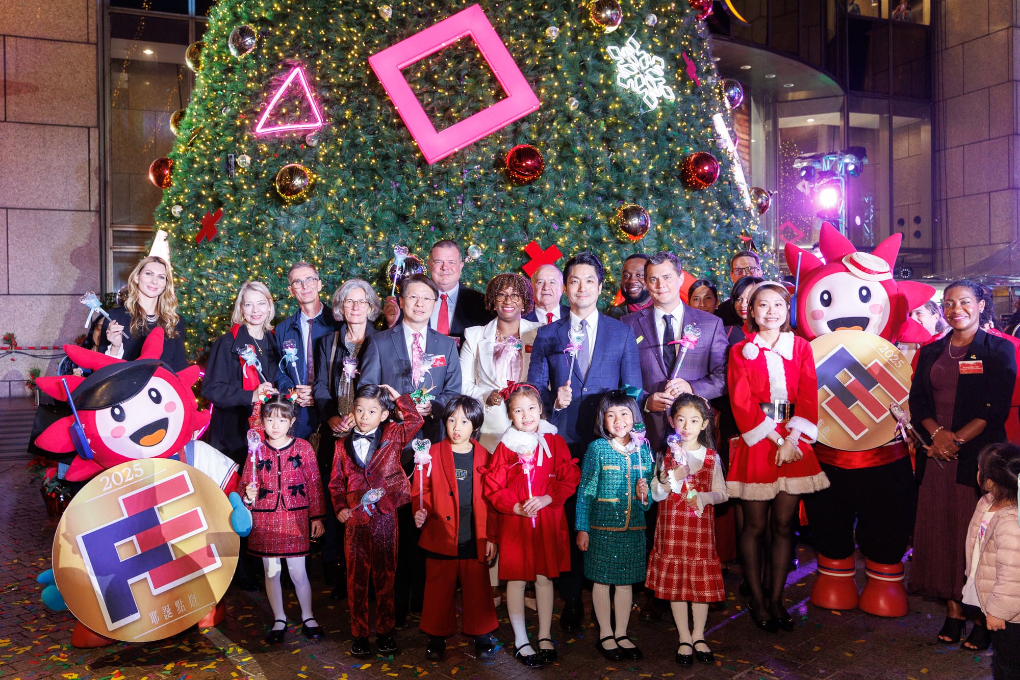 遠東集團徐國安創新長與台北市政府蔣萬安市長、外交部甄國清主任秘書及各國使節貴賓,一起點亮遠企耶誕樹,迎接即將到來的歡樂耶誕佳節。圖/台北遠東香格里拉提供