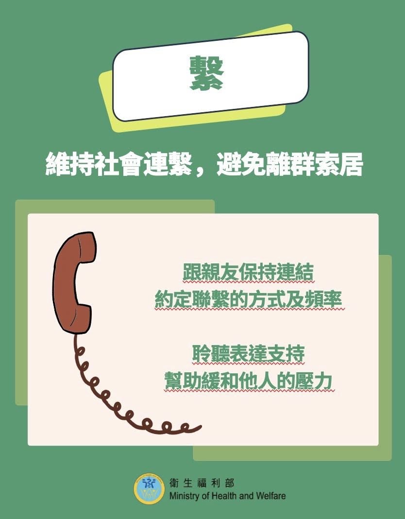 繫:聯繫親友,分享感受不孤單。