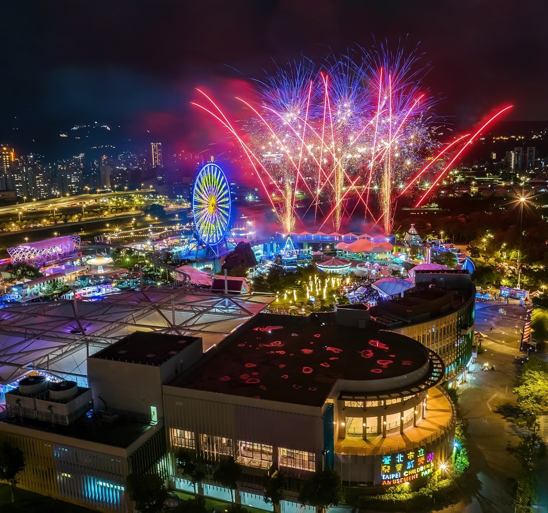 為了兼顧孩子作息與跨年氣氛,台北兒童新樂園今年主打「Break Through the Sky幸福心樂園」主題,將煙火與無人機秀提前到晚上播放,打造出「最友善親子」的跨年新選擇。