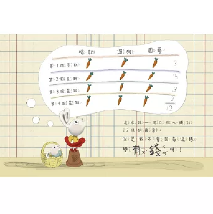 學會賺錢,是孩子理解「價值」的起點。故事裡,小兔子透過努力和創意去獲得胡蘿蔔,讓孩子明白收入並非憑空而來,而是透過付出時間、心力甚至創意換來的回報。這不只是金錢的來由,更是在教孩子珍惜與尊重自己與他人勞動成果,培養責任感與自信心。