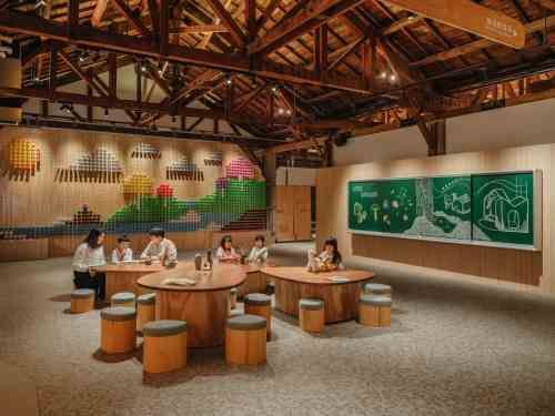 花蓮「繪本故事屋」座落在花蓮文化創意產業園區第6棟,原是歷史悠久的酒廠空間,經修復後以木造建築溫潤感重新登場。設計團隊保留了屋架與歲月痕跡,讓老建物在童話與故事裡重新活起來,彷彿走進一座森林故事屋。