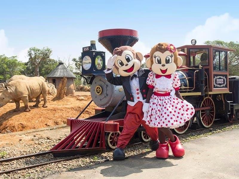 六福村主題遊樂園結合遊樂設施與動物園體驗,遊客可搭乘蒸氣火車近距離欣賞園區動物生態,享受寓教於樂的親子遊園時光。圖/六福村主題遊樂園提供