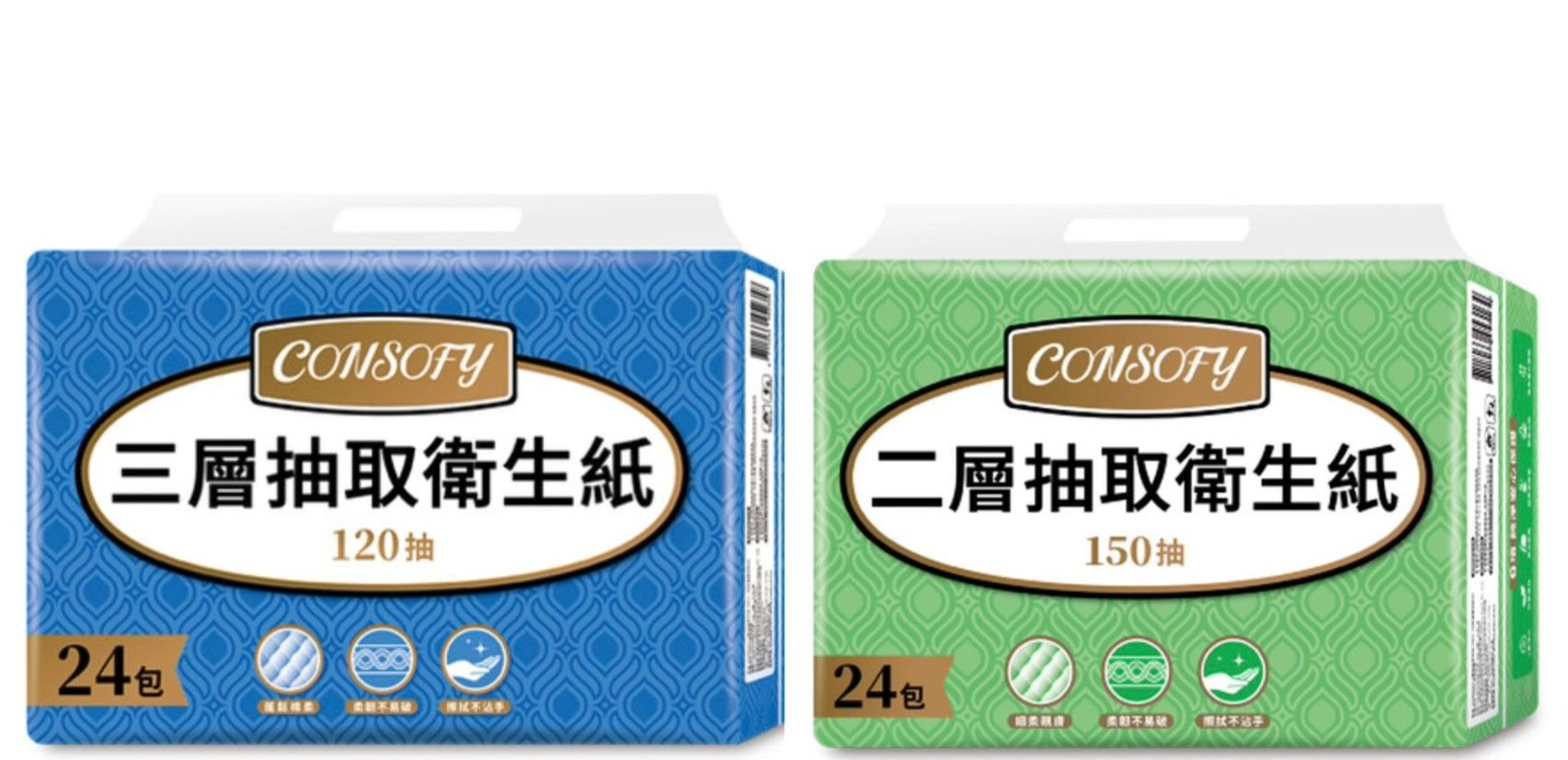 全聯通路限定販售的CONSOFY兩層與三層衛生紙都受消費者青睞