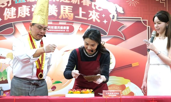 (沈靜芬署長示範年菜製作,傳遞健康飲食的重要性。圖片提供╱國健署)